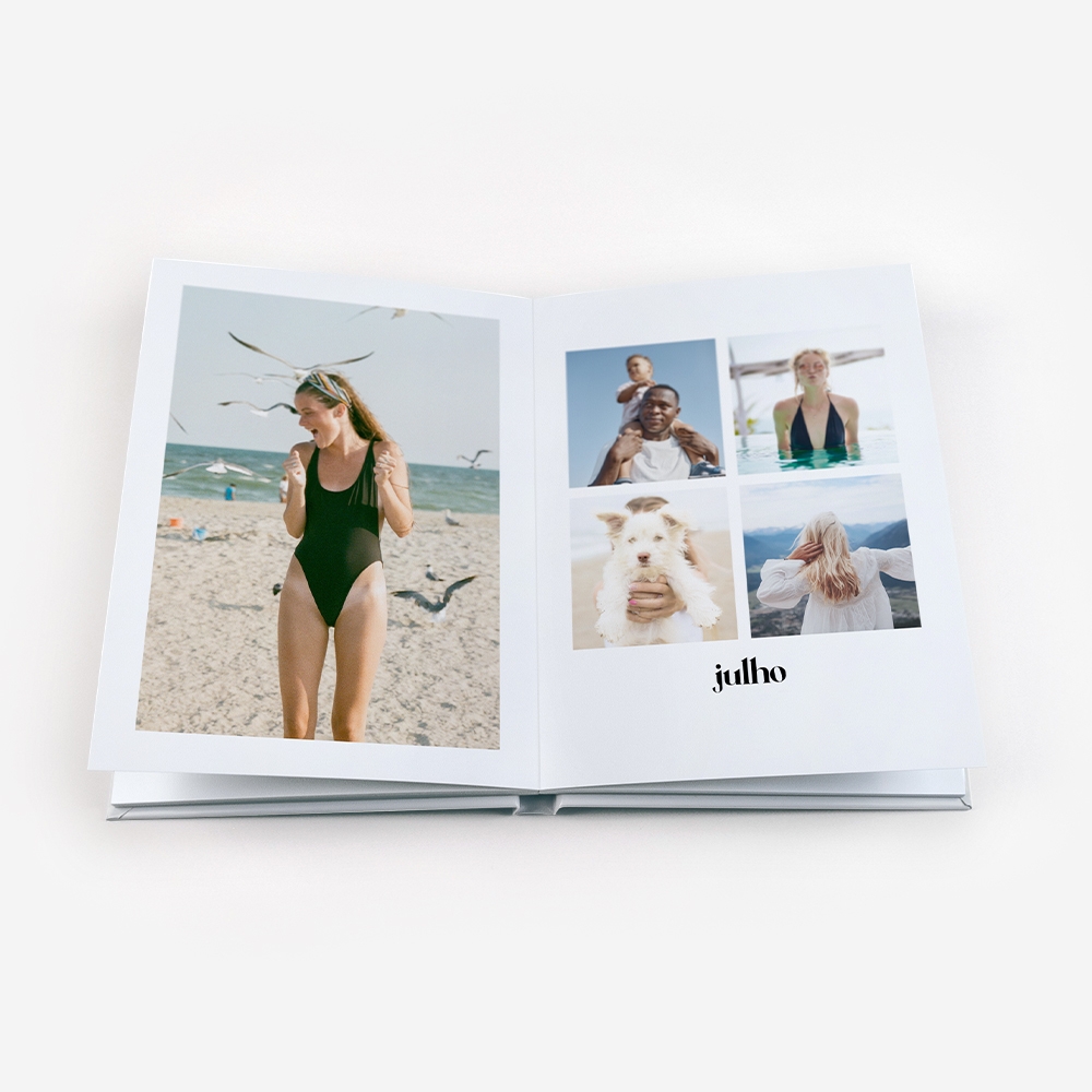 A capa rígida em cartão duro oferece proteção adicional e um acabamento elegante ao teu álbum.