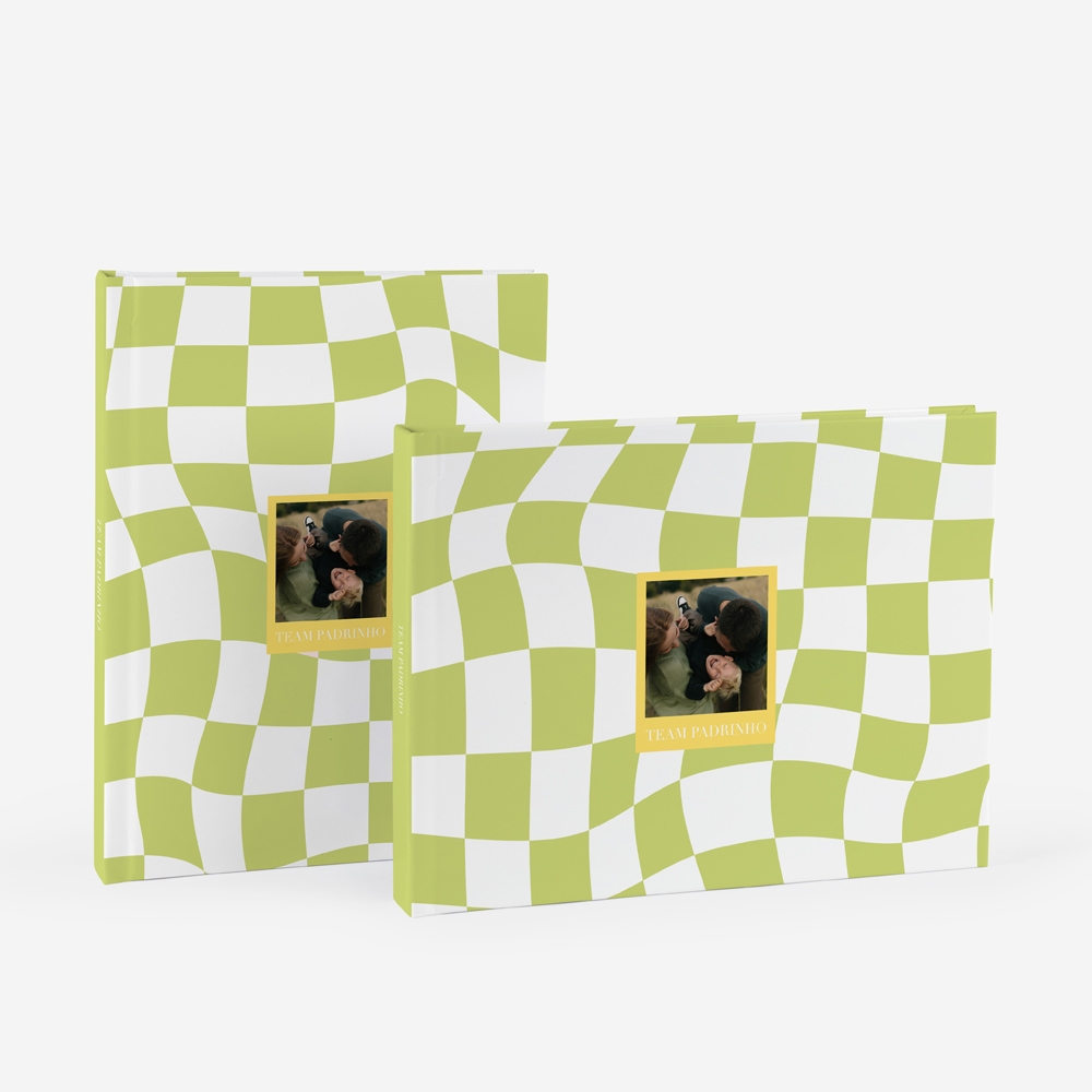 Mais do que um padrinho, um companheiro de equipa para a vida. O tema Team Padrinho utiliza um padrão checkered em verde sage, a cor do momento, para criar um visual dinâmico, moderno e sofisticado.