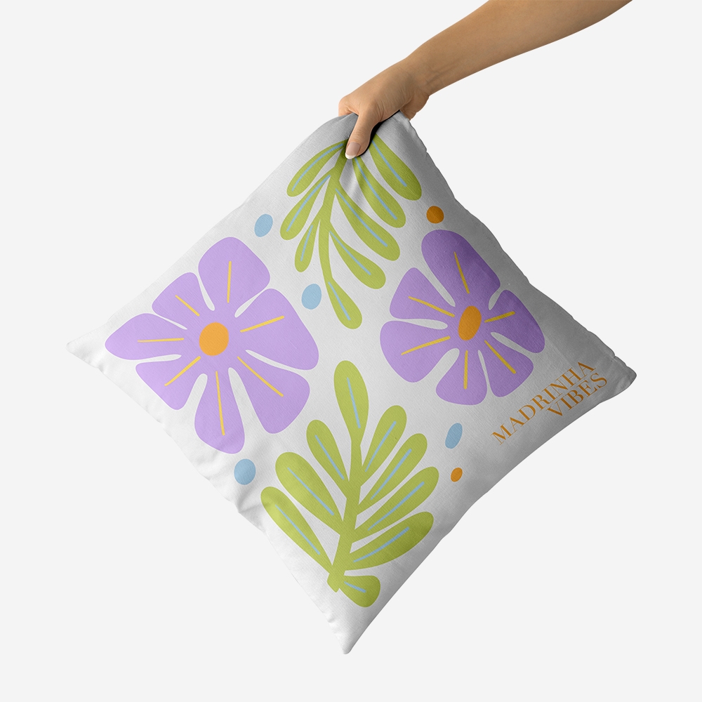 Leva a frescura do jardim para dentro de casa sem teres de te preocupar com a rega. O padrão botânico em tons de lilás e laranja pop dá logo outra vida a qualquer canto. É o teu novo spot favorito para ler um livro ou ver aquela série, com o estilo que a tua sala merece.