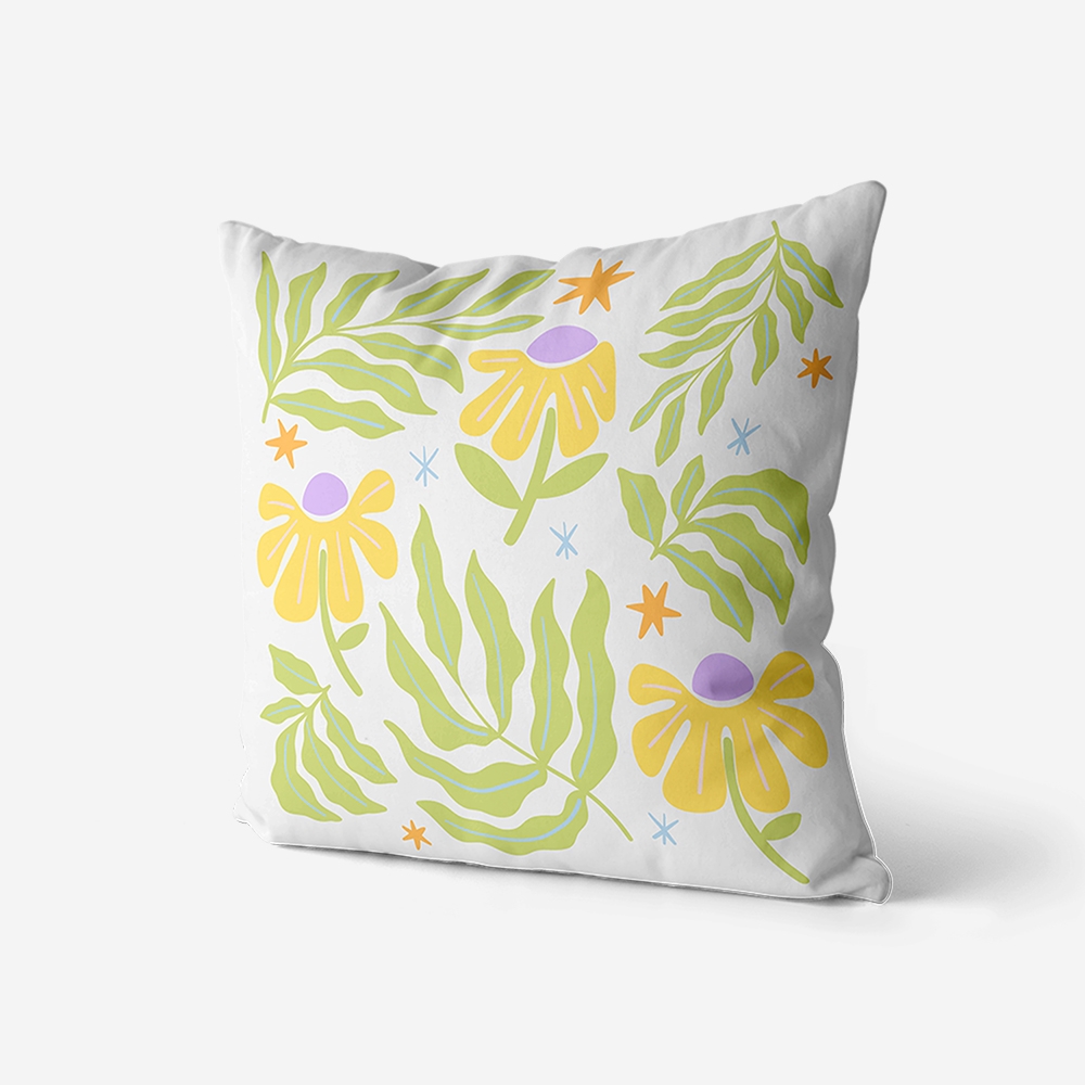Quem disse que a decoração tem de ser aborrecida? Com folhagens verdes e flores num amarelo vibrante, esta peça é o truque mais rápido para dares cor à tua casa sem esforço. Uma almofada cheia de pinta para aqueles momentos em que o plano é só não fazer nada.