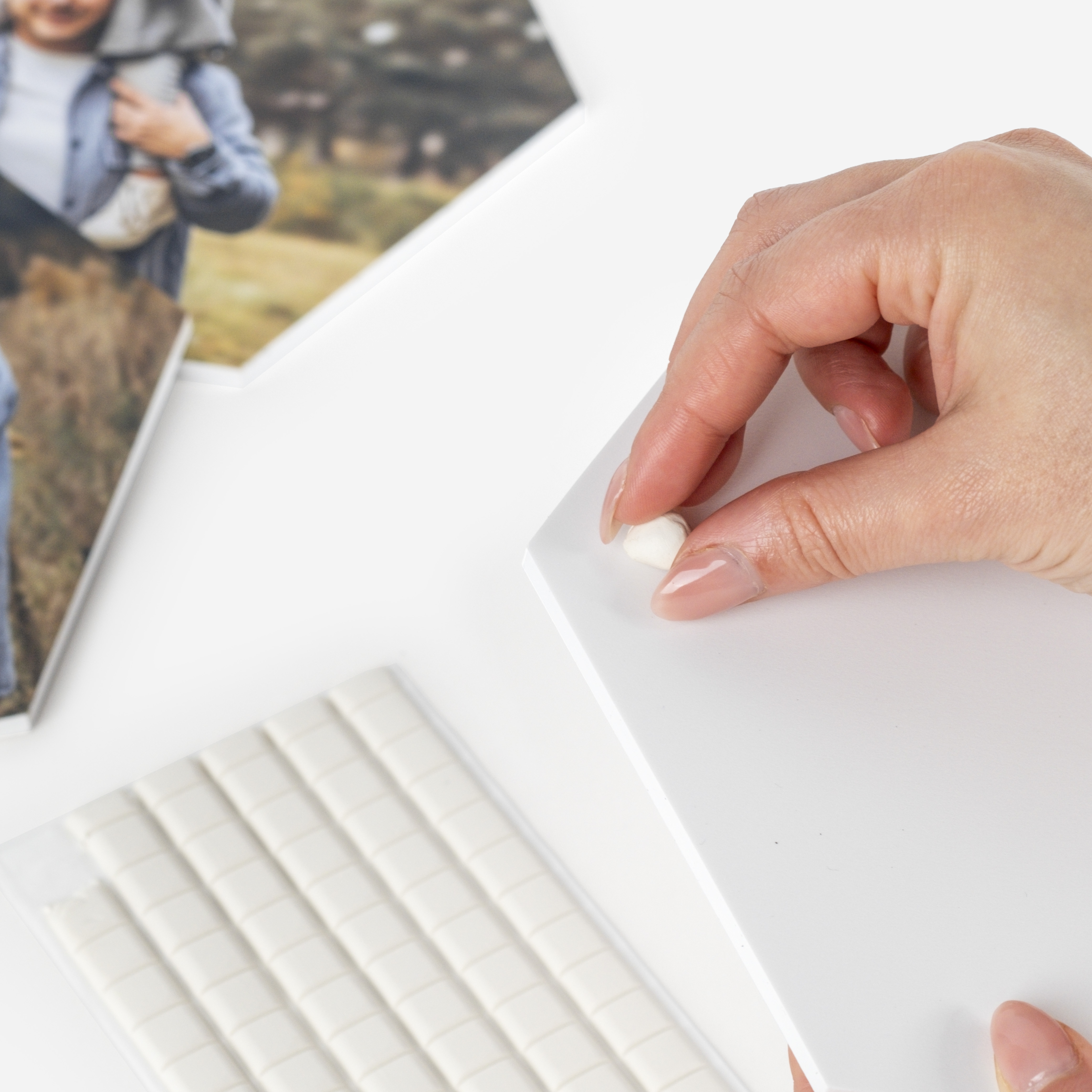 Escolhe entre o formato quadrado ou hexagonal e cria as tuas composições únicas e personalizadas com os Quadro Adesivo x UHU. Que tal transformar a parede da tua sala numa galeria de arte moderna, com um mural de fotografias das tuas viagens favoritas? Ou criar um ambiente acolhedor no quarto, com uma disposição de quadros que conte a história com a tua cara metade?