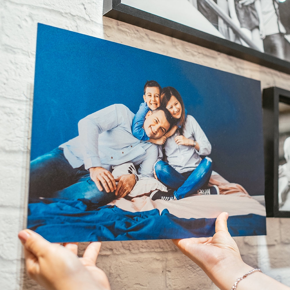 O alumínio realça as imagens proporcionando cores mais vibrantes e de nítida resolução com um destaque diferenciador às imagens nele impressas. Tem uma superfície rígida, resistente a riscos, água, corrosão atmosférica e fácil de limpar sem que seja danificada. A tua fotografia preferida do casamento, a sessão fotográfica em estúdio do teu bebé, a viagem memorável.... Certamente não faltarão ideias de momentos especiais para rechear a tua casa com as melhores memórias. Com o nosso Editor online, imprimir fotografias em Quadros para a tua casa é fácil, rápido e cómodo. Basta selecionares o formato do quadro, fazer upload da tua fotografia preferida, personalizar a imagem como quiseres, selecionares uma morada para a entrega e finalizares a tua encomenda no Editor.