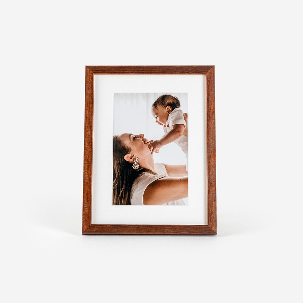 Moldura de alta qualidade, composta por uma estrutura em Madeira com proteção em vidro, garantindo durabilidade e um acabamento perfeito para destacar as tuas fotos.