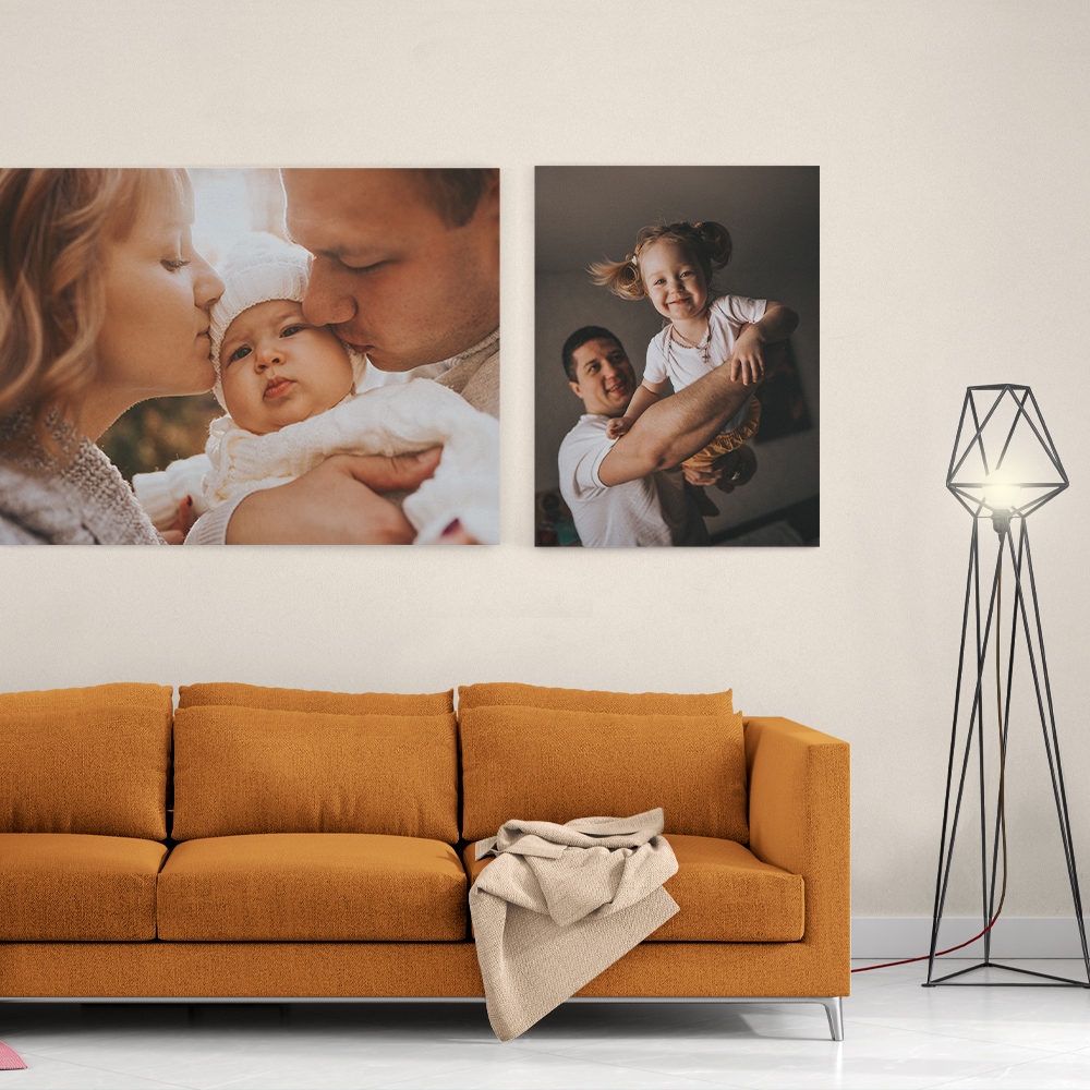Impressas num material artificial com acabamento fosco, garantindo cores vibrantes e contrastes intensos. Disponíveis em bastidores de 2 cm ou 3,5 cm de profundidade.